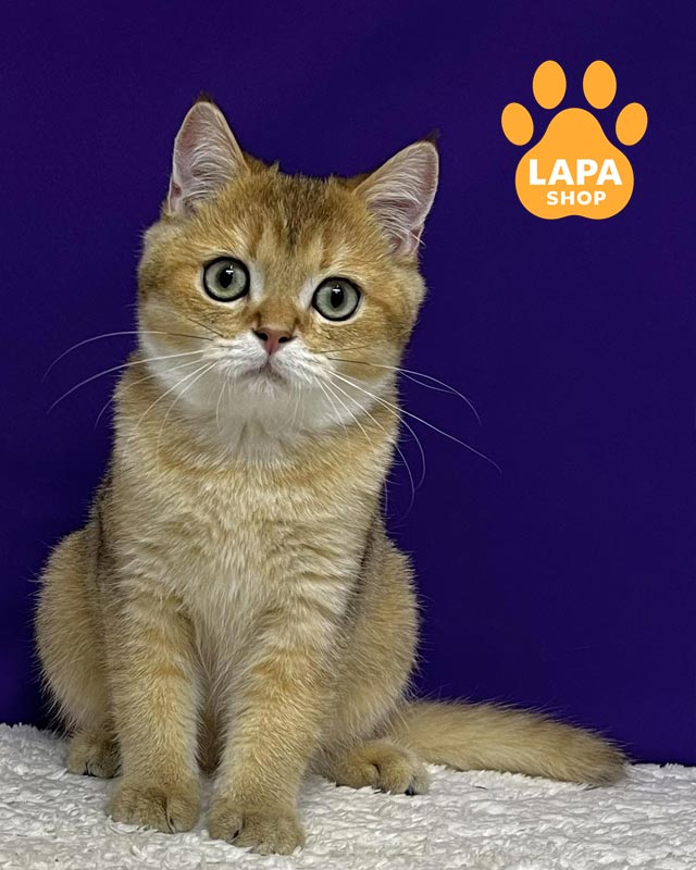 Wolf — необыкновенно красивый мальчик породы скоттиш-страйт с золотым затушеванным окрасом, который придает его шубке глубину и благородный блеск. Его прямые ушки, круглые глаза и мягкие черты создают впечатление нежного, но уверенного котенка.