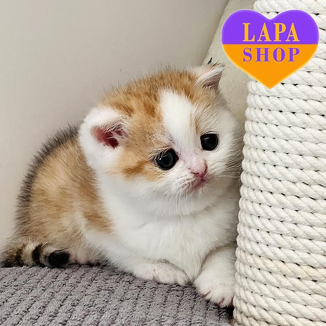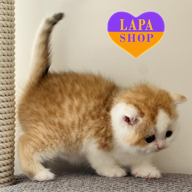 Elka – маленькая шотландская леди. Ее роскошная короткая шерсть сочетает теплые золотые оттенки с белыми акцентами, создавая уникальный рисунок.