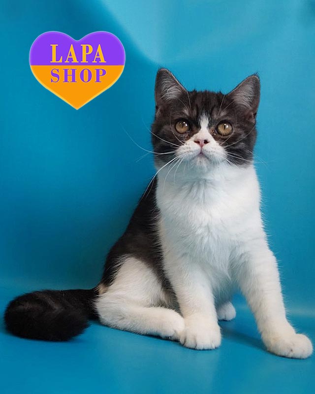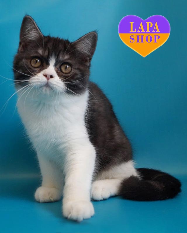 Patrick — харизматичный котенок породы скоттиш-страйт с черным серебристым с белым окрасом. Его контрастная шубка и большие глаза покоряют с первого взгляда.