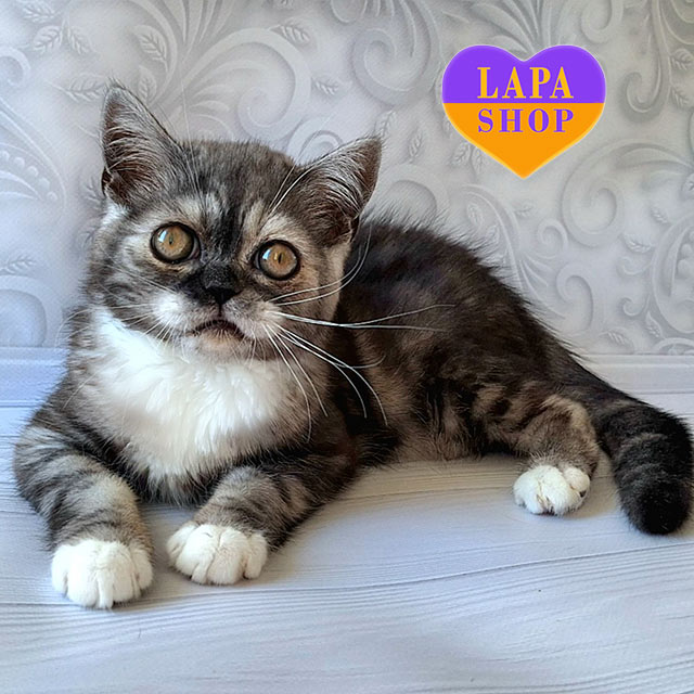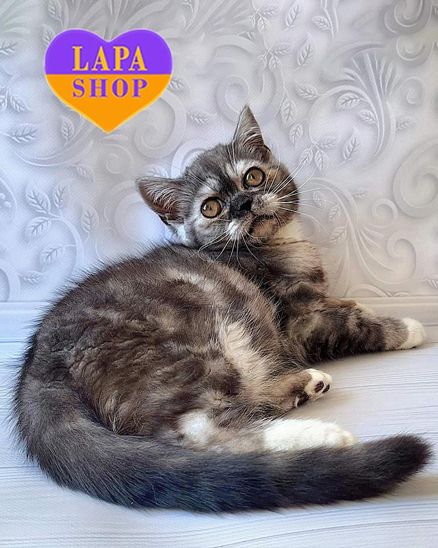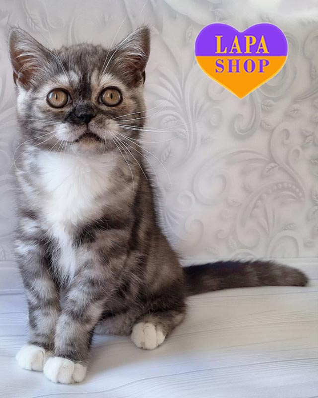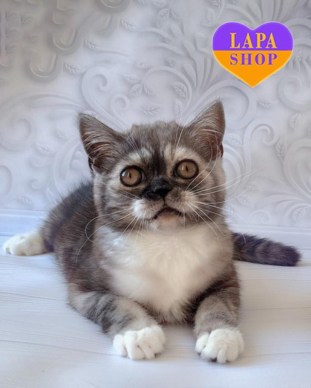 Wealthy – маленький мальчик шотландской породы с эффектным черным дымным окрасом и белоснежными отметинами (ns 09).