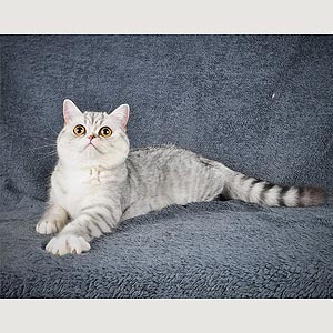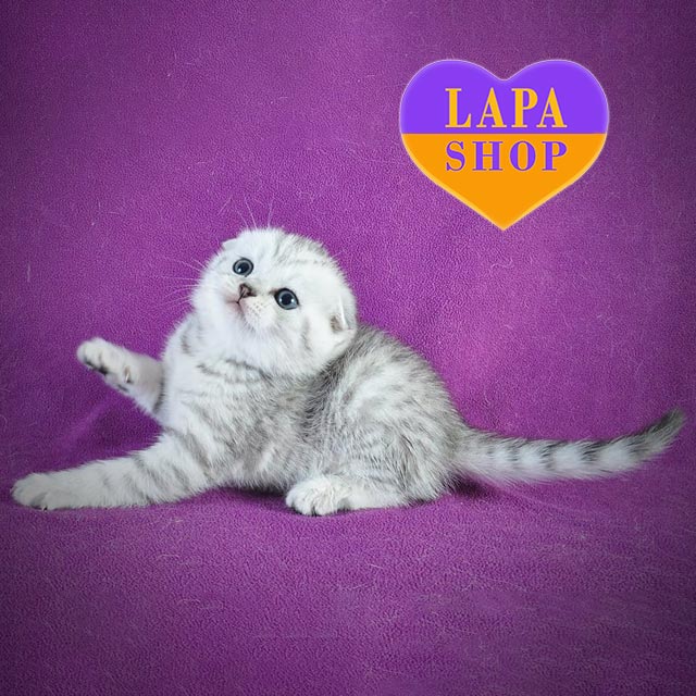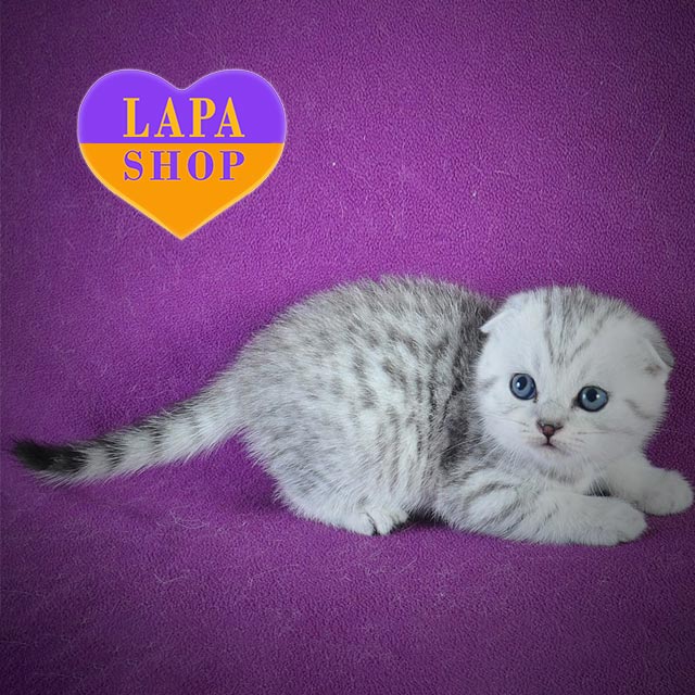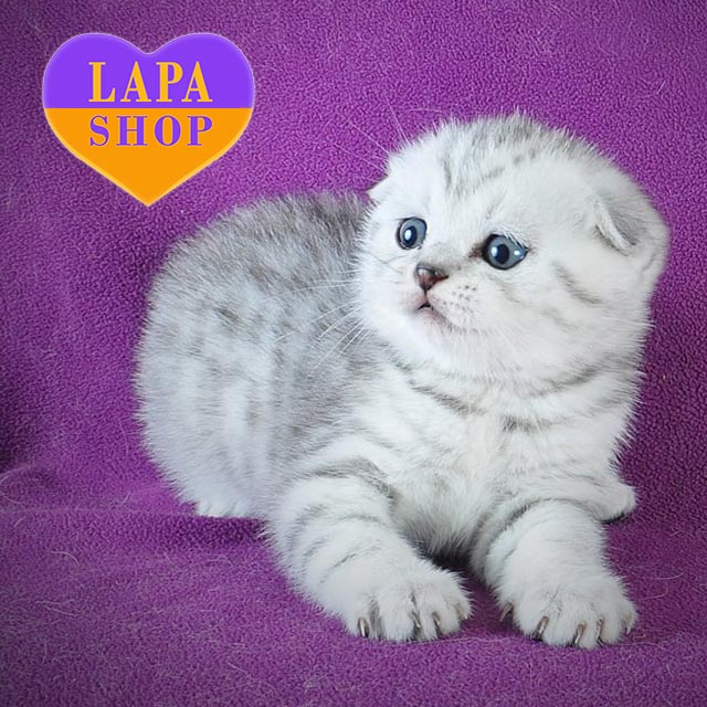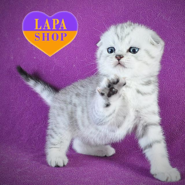 Casper — мальчик скоттиш-фолд с серебристым пятнистым окрасом и милыми загнутыми ушками.