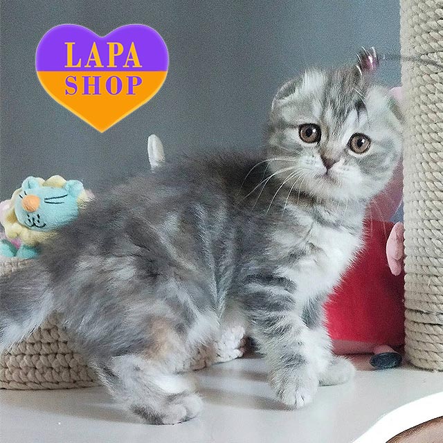 Ilene — очаровательная леди породы шотландская вислоухая с изящной черепаховой мраморной окраской. Ее нежная внешность и аккуратная шерсть делают ее настоящим украшением любого дома.