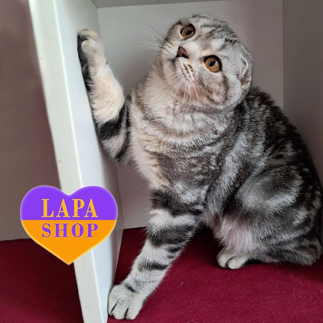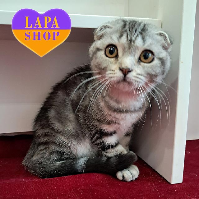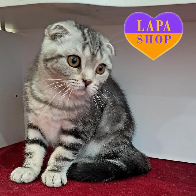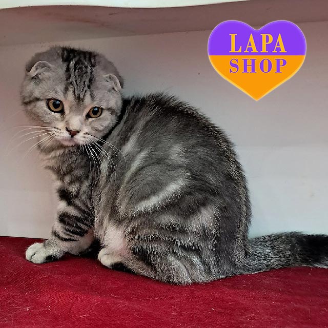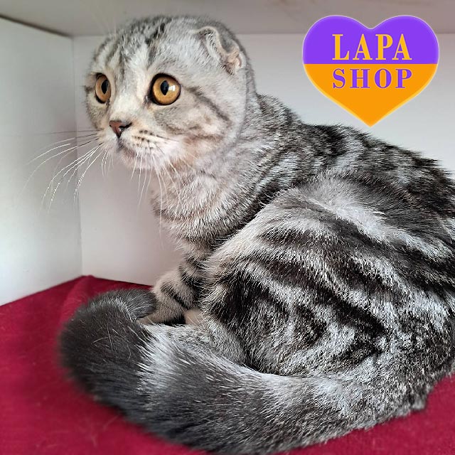 Моника – элегантная мраморная шотландская красавица. Милые склады на ушках, округлые глаза и мягкая шерсть делают ее невероятно привлекательной.