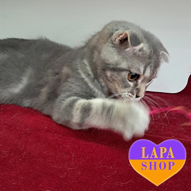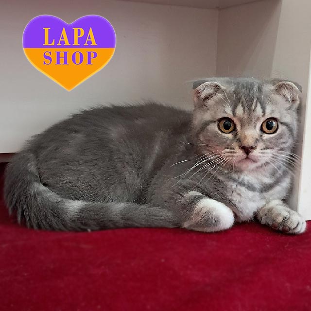 Маркус – элегантный мальчик шотландской породы. Его изысканный окрас – голубой серебристый мраморный (as 22) – поражает гармоничностью оттенков и волшебными узорами.