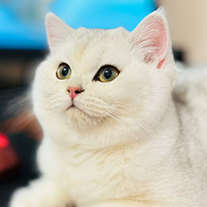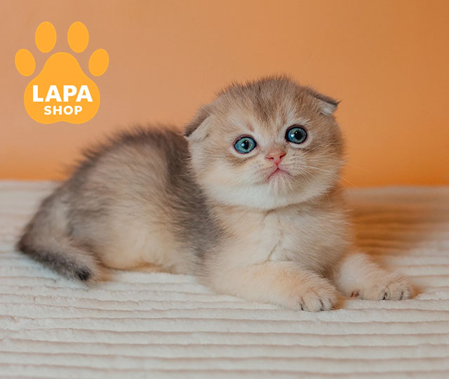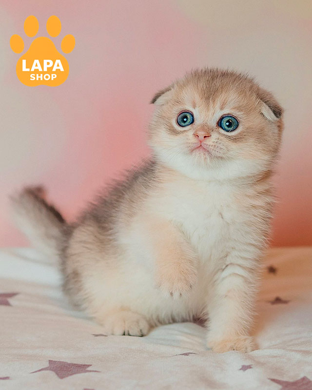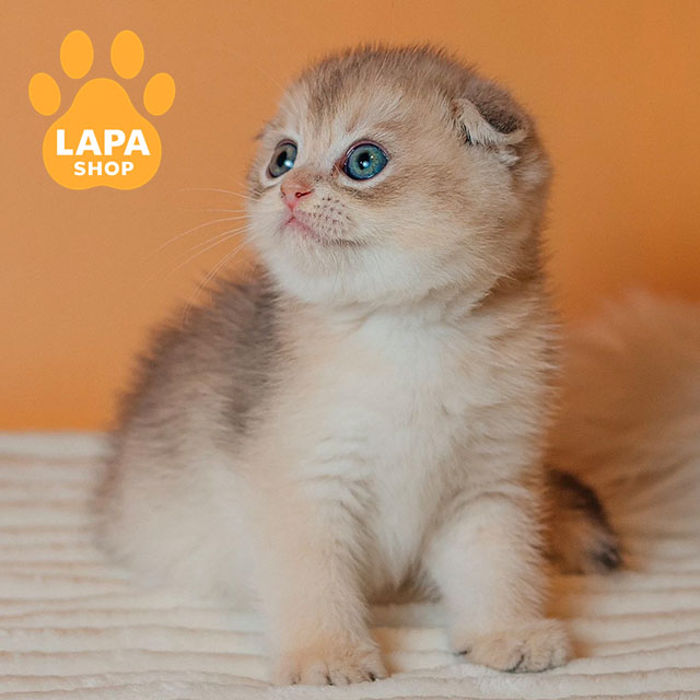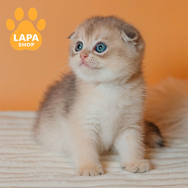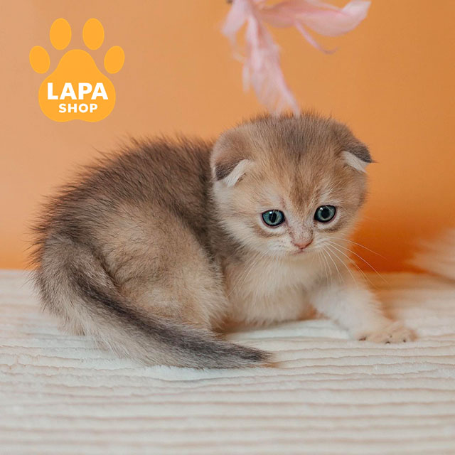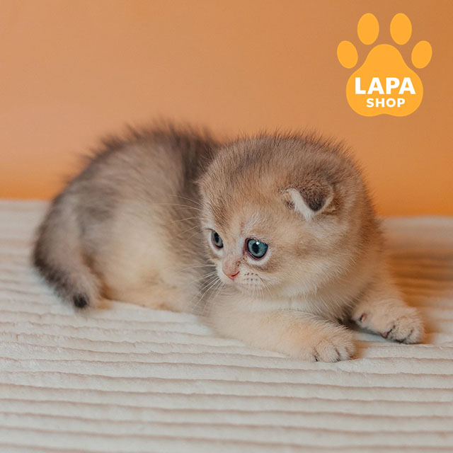 Красавец Cosmo – шотландский вислоухий котик с очаровательным голубым золотым затушенным окрасом (ay 11). Его окрас отличается нежным переливом и изысканным блеском, подчеркивая грациозность и элегантность котика.