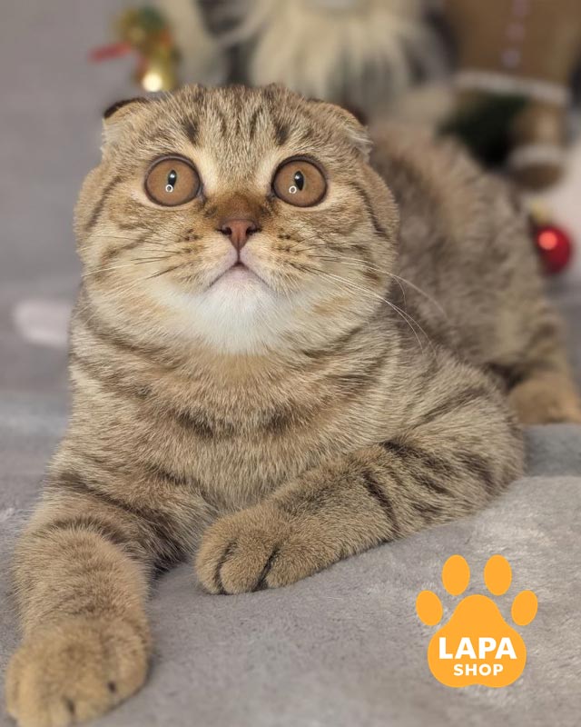 Viva – нежная девочка скоттиш-фолд с шоколадным пятнистым окрасом.