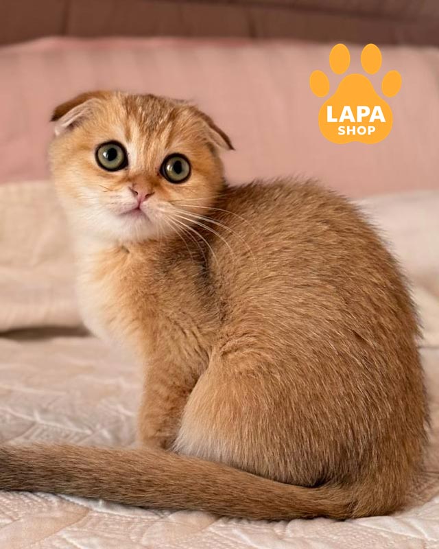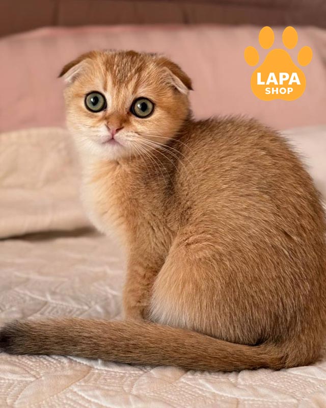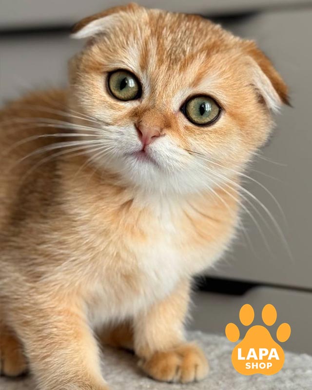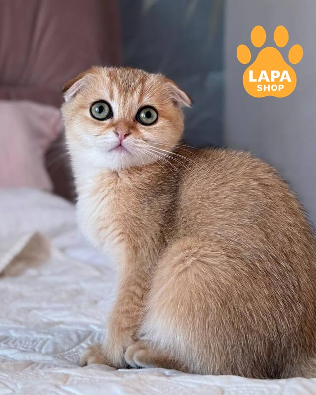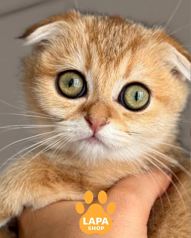 Rozy – нежная шотландская вислоухая красавица с роскошной плюшевой шерстью теплого золотого оттенка.