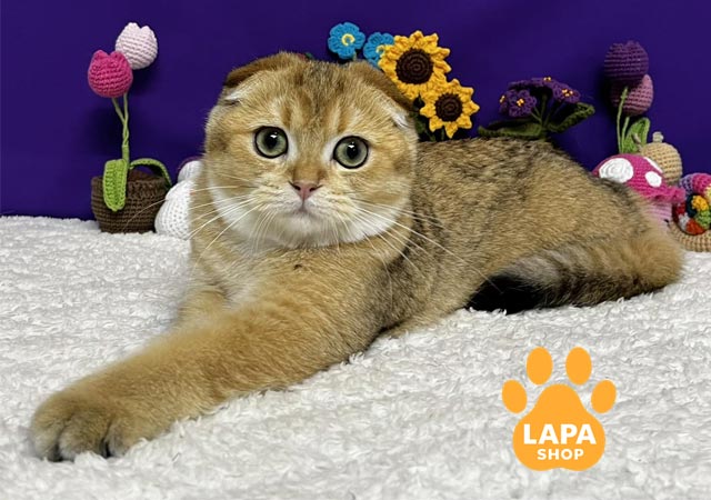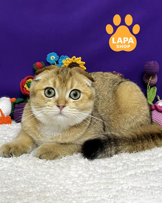 Знакомьтесь с невероятной девочкой по имени Wendy — редкой красавицей скоттиш-фолд с изысканным золотым завуалированным окрасом.