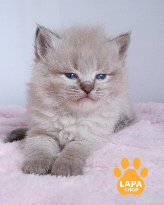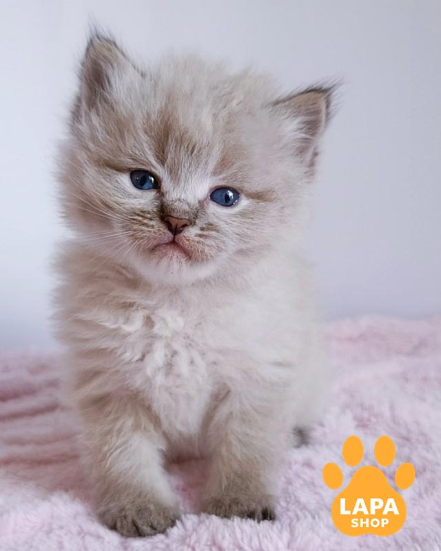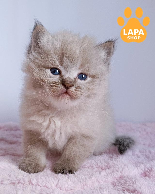 Его окрас отличается светлым телом и контрастными темными поинтами на мордашке, ушках, лапках и хвосте.