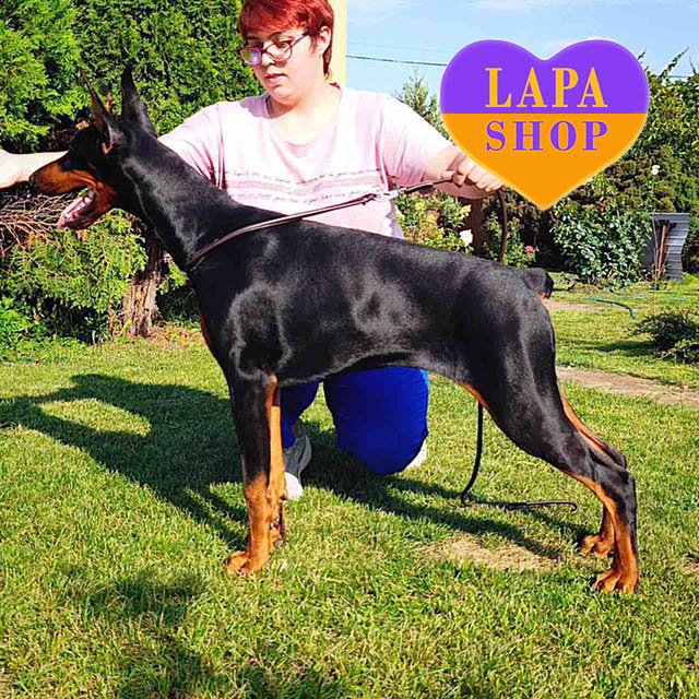 Титулы: International Champion, Makedonian Dobermann Club Виннер 2024 (104 entries) ex-3 Champion class, Winner of Moldova 2023, 2×Crufts Qualification, Junior Champion of Moldova, 3×Champion of Ukraine, Champion of Moldova, Rumania, Limania Македония, Монтенегро, Босния и Герцеговина, Балькан, Адриатический, Champion of Breed, Best Best in Breed in Ukraine, Grand Champion of Moldova, Rumania, North Macedonia, Balkan, Super Grand Champion of Moldova.