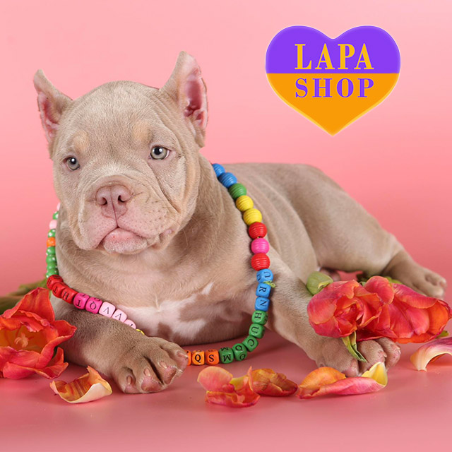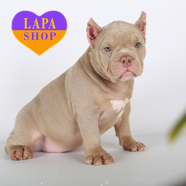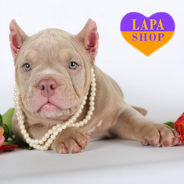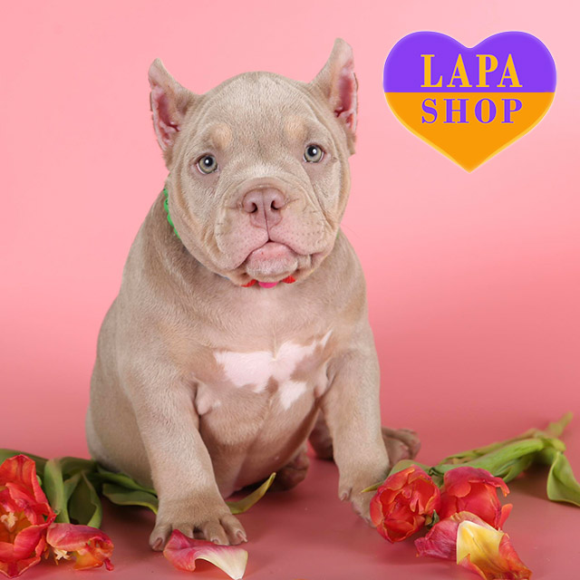 Афина — изящная девочка породы американской булли с поразительной лиловой окраской. Ее яркий вид и гармоничное строение делают ее настоящим украшением породы. Маленький, неполный хвост придает ей еще больше оригинальности и делает ее внешность еще более интересной.