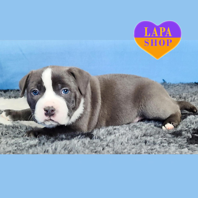 Этот мальчик породы американский булли покет голубого окраса — настоящая привлекающая внимание красота. Он не только красив, но и носит идеальный характер, готов стать лучшим другом для вашей семьи.