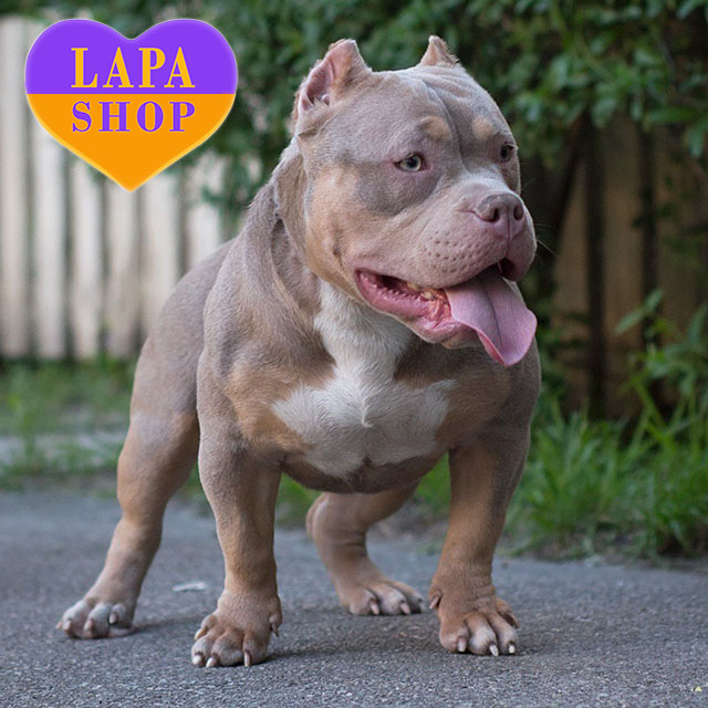 Нежная и преданная девочка породы американский булли покет в лиловом триколорном окрасе ищет любящую семью. Ей 2 года, она уже стерилизована, имеет отличный характер, любит людей и хорошо ладит с другими собаками. Есть небольшой нюанс – атрофия сетчатки глаза, из-за чего в темноте она видит хуже, однако днем это никак не мешает ей радоваться жизни, бегать и играть.