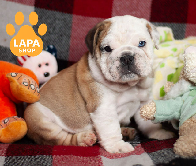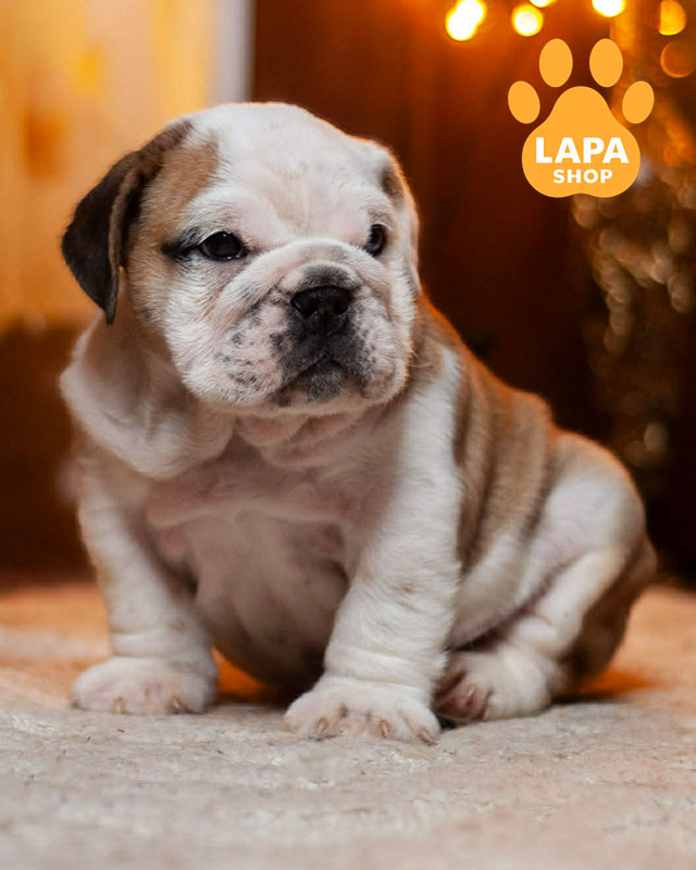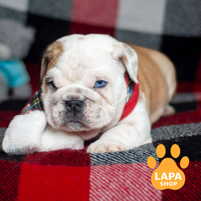 London — впечатляющий мальчик породы английский бульдог с рыже-белым окрасом и ярким голубым глазом, который придаёт ему особый шарм. Имеет крепкое, пропорциональное телосложение и привлекательную мордочку. Его внешность подчёркивает элегантность и уверенность породы.