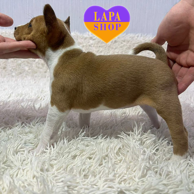 Очаровательная девочка басенджи с нежной рыже-белой окраской станет настоящим сокровищем для своей будущей семьи. Ее грациозная внешность и мягкий нрав делают ее идеальным домашним любимцем.