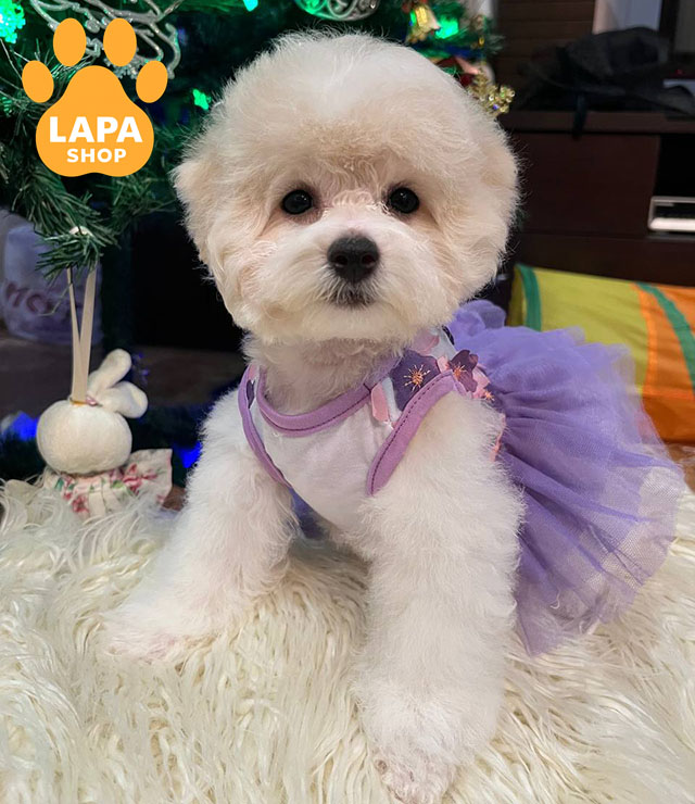Девочка породы бишон фризе из baby face – нежная и гармоничная представительница породы с густой, качественной шерстью белого окраса. Она имеет хороший пигмент, правильную анатомию и выразительную внешность.