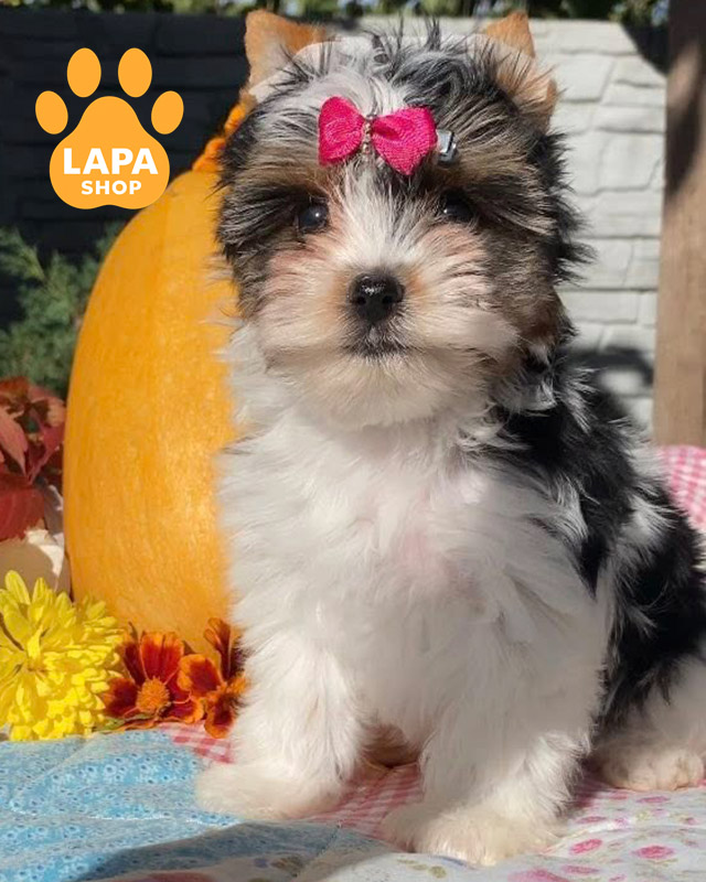 Очаровательная девочка Ketty ивер йоркширский терьер имеет гармоничный бело-черно-золотой окрас, который придает ей особый шарм. Ее шелковистая шерсть и выразительные глаза создают нежный и одновременно изысканный образ. Эта маленькая красавица выглядит аккуратно и утонченно, словно настоящая принцесса.