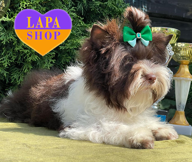 Мальчик породы бивер йоркширский терьер стандартного размера с эффектной шоколадной окраской и белыми отметинами. Его гармоничная внешность делает его очень привлекательным и милым.