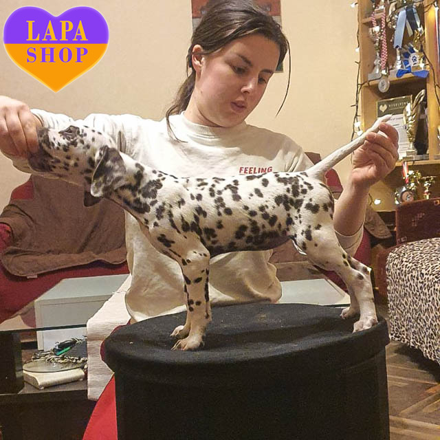 Эта потрясающая девочка породы Далматина с ее уникальной белой шерстью и красивыми коричневыми пятнами является настоящей жемчужиной. Бережно социализированная и с любовью ухоженная, она готова доставить радость и тепло своей новой семье.