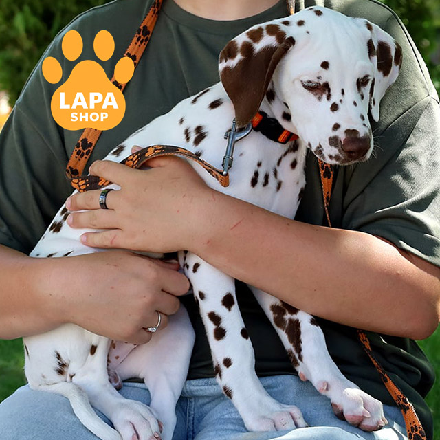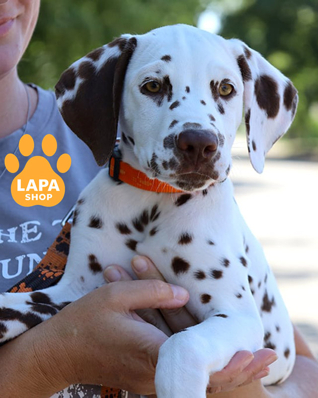 Sundown Amber (Izyum) – веселый мальчик породы далматин с уникальным бело-коричневым окрасом. Его яркий экстерьер и энергичная натура делают его настоящим украшением любого дома. Любит всех людей, легко находит контакт с гостями и всегда игриво носит мячик, словно улыбаясь.