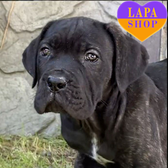 Этот мальчик породы кане корсо поражает своим мощным телосложением и яркой тигровой окраской. Его гармоничное строение, выразительная морда и крепкие лапы подчеркивают типичность породы.