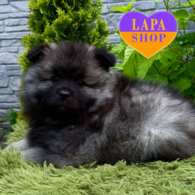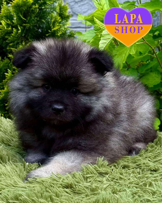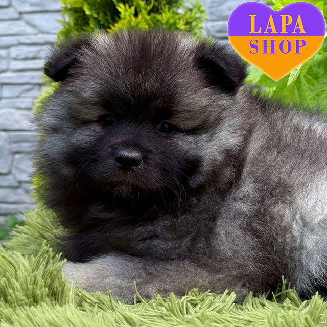 Эта очаровательная девочка породы вольфшпиц с характерным волчьим окрасом и пушистой густой шерстью. Она имеет хорошие пропорции, выразительную мордочку и типичную для породы объемную «гриву» вокруг шеи.