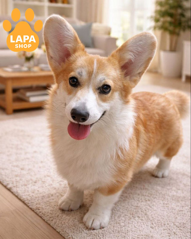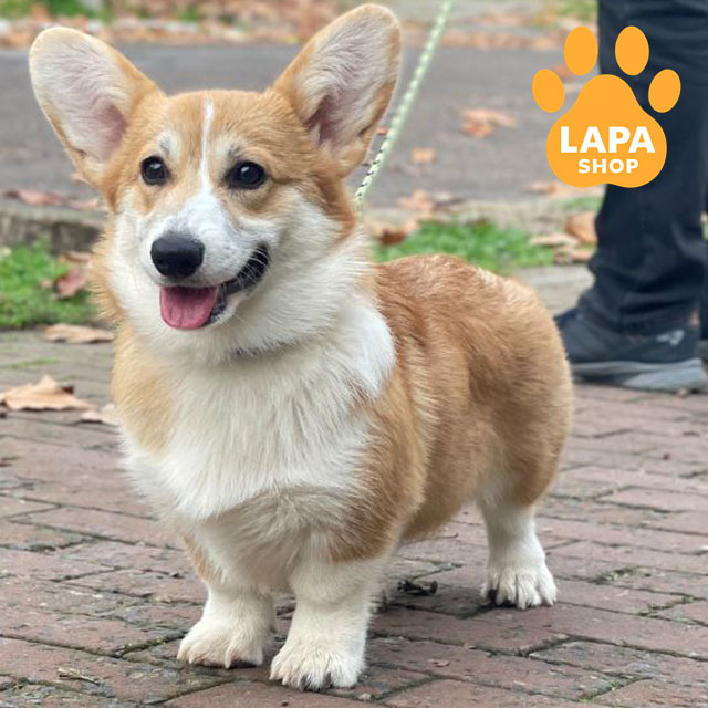 Маленькая красавица Kylie Glow породы вельш корги пемброк имеет рыжий с белым окрасом, который выглядит чрезвычайно мило и гармонично. Ее компактное телосложение и выразительные глаза придают особый шарм.