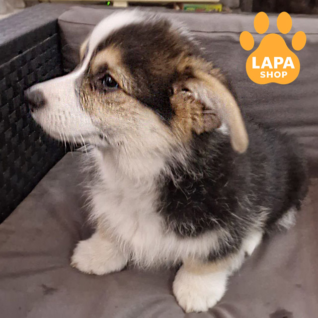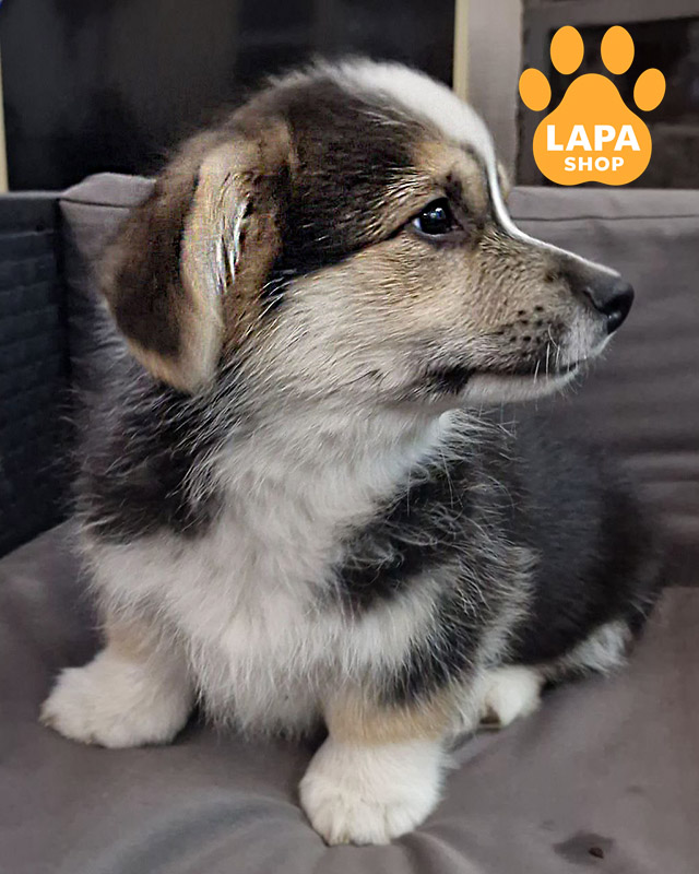 Очаровательный мальчик породы очень корги пемброк с эффектным триколорным окрасом. Его короткие лапки, умный взгляд и яркий окрас делают его настоящим любимцем.