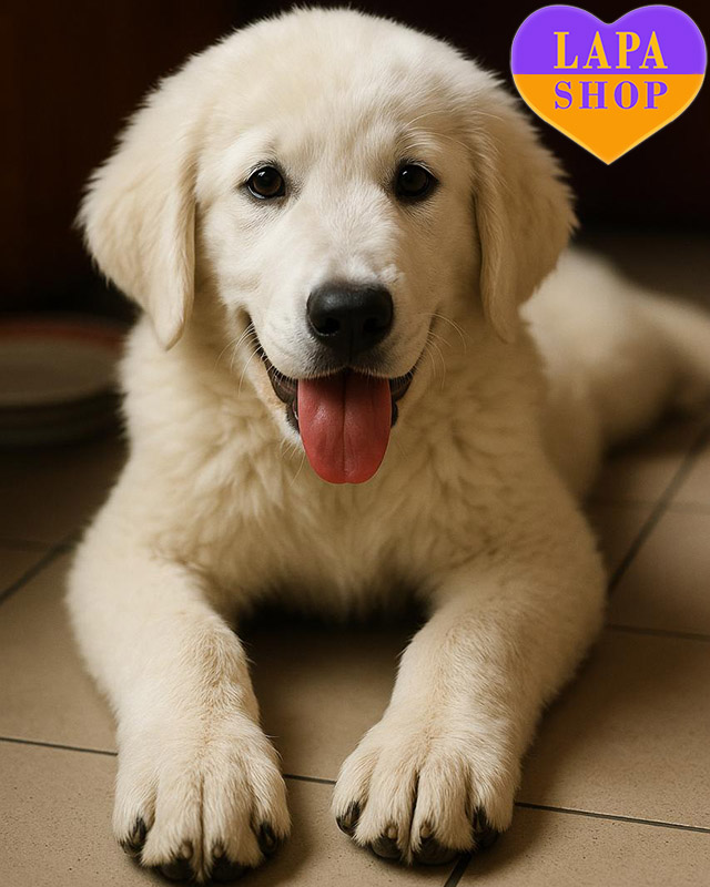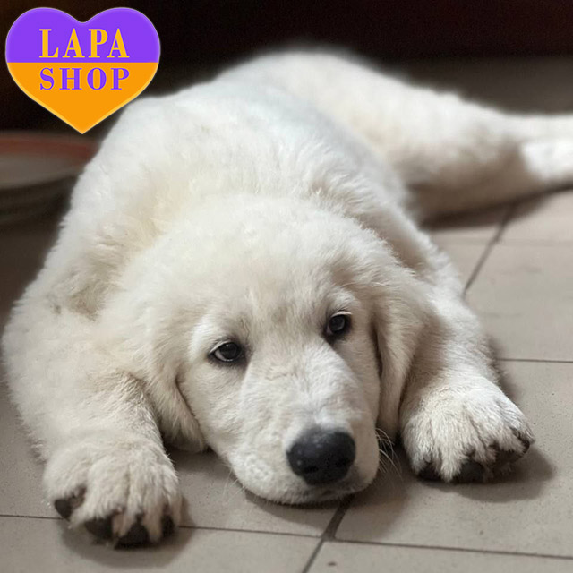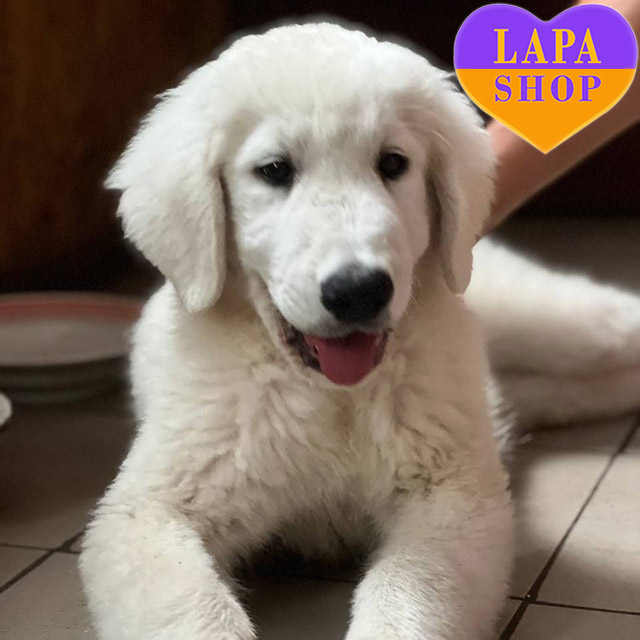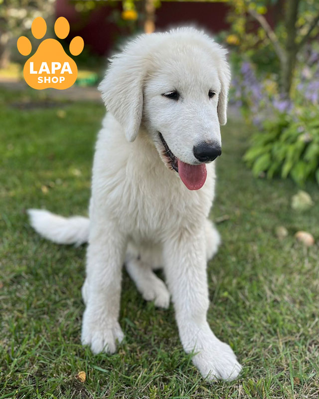Элегантная девочка породы маремма-абрюцкая овчарка белой окраски. Ее красивая, пышная шерсть и грациозное телосложение делают ее настоящим украшением дома. Впечатляет своей величественной внешностью и гармоничными пропорциями.