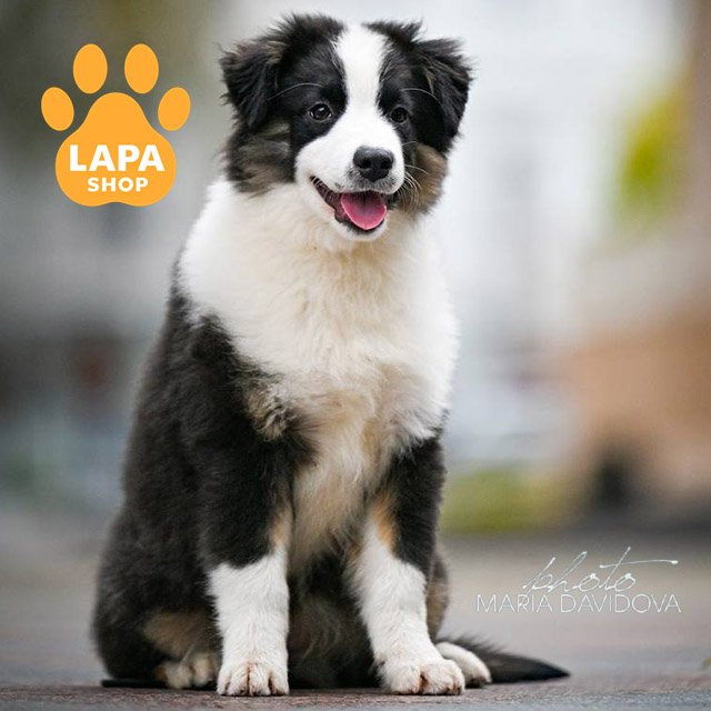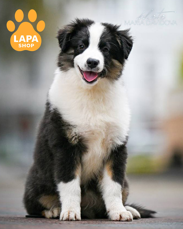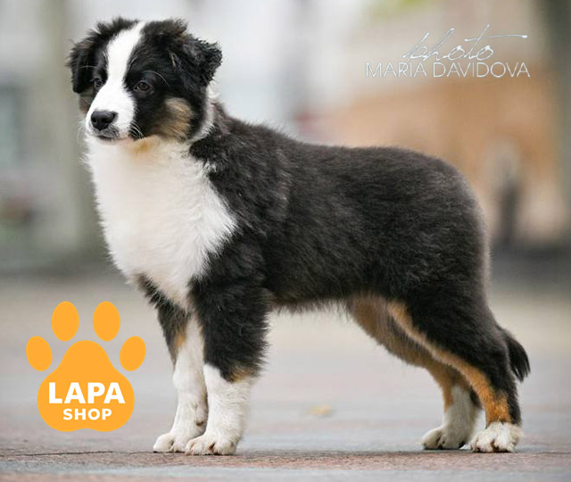 Очаровательная девочка породы миниатюрная американская овчарка с насыщенным черным триколорным окрасом. Ее гармоническое телосложение и яркие отметины делают внешность особенно выразительной.