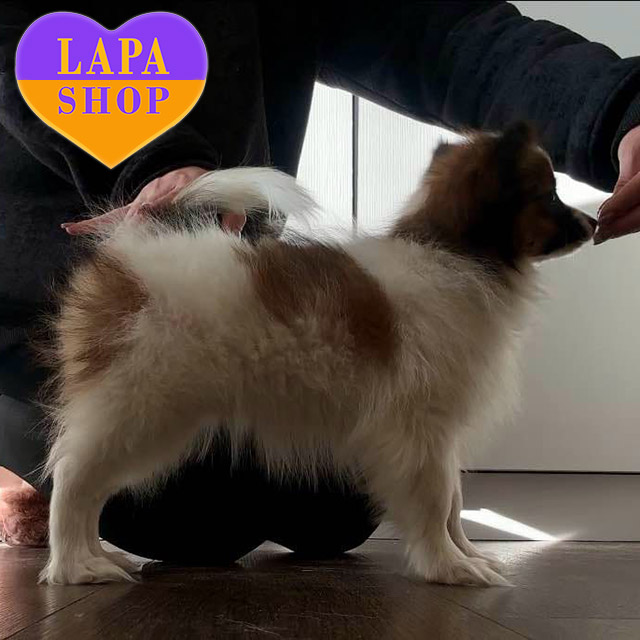 Этот грациозный мальчик породы континентальный спаниель с элегантной бело-соболиным окрасом. Его шелковистая шерсть, пушистые ушки и изящные черты придают ему королевский вид. Он непременно станет украшением вашего дома и настоящим другом.
