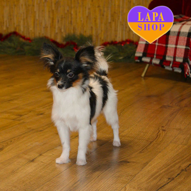 Valencia – очаровательная девочка папильон с роскошной трехцветной окраской. Ее утонченность и отличная перспектива для выставок и разведения делают ее идеальным выбором для любителей этой уникальной породы.