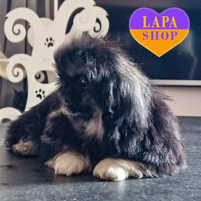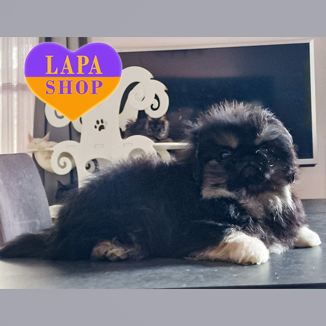 Маленькая красавица с роскошной пушистой шерстью и выразительными глазами. Ее контрастная окраска придает особый шарм и подчеркивает утонченность. Компактное телосложение и хорошая посадка головы делают ее настоящей леди среди пекинесов.