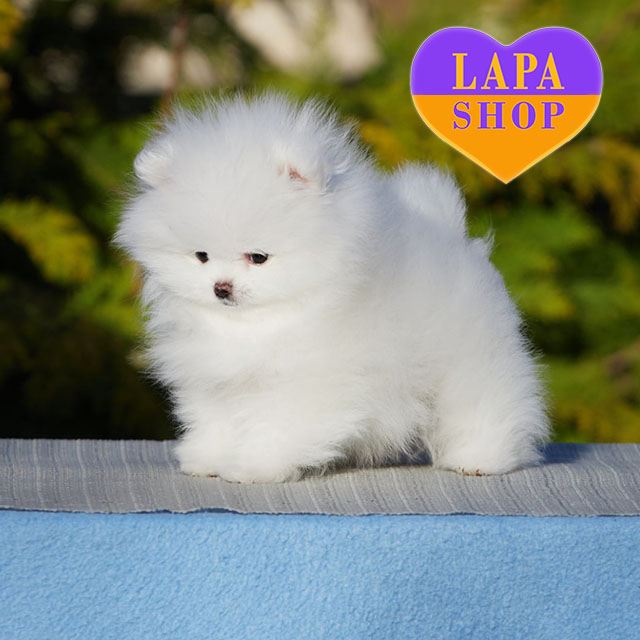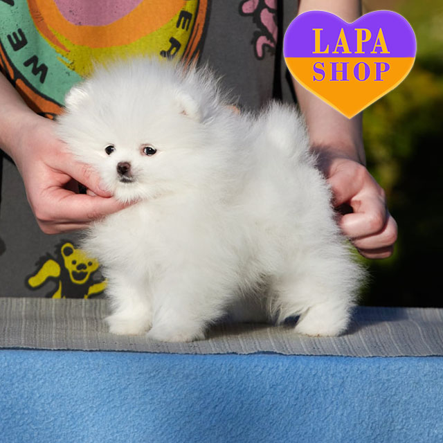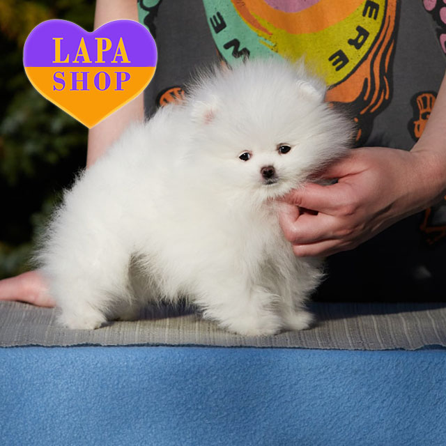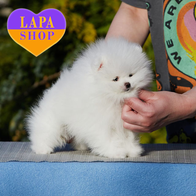 Эта белая девочка породы померанского шпица очаровывает с первого взгляда. Ее пушистый белоснежный мех и миниатюрная мордашка создают идеальный образ маленькой принцессы.