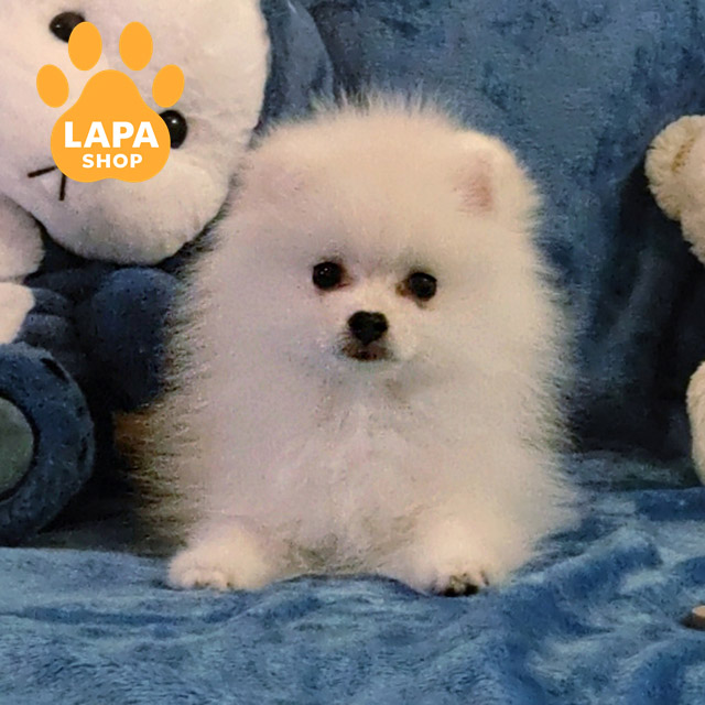 Лакки – милый мальчик породы померанский шпиц с пушистой белой шерстью. Его аккуратная внешность и компактный размер делают его настоящим украшением дома. Его нежность и обаяние делают его идеальным другом для семьи.