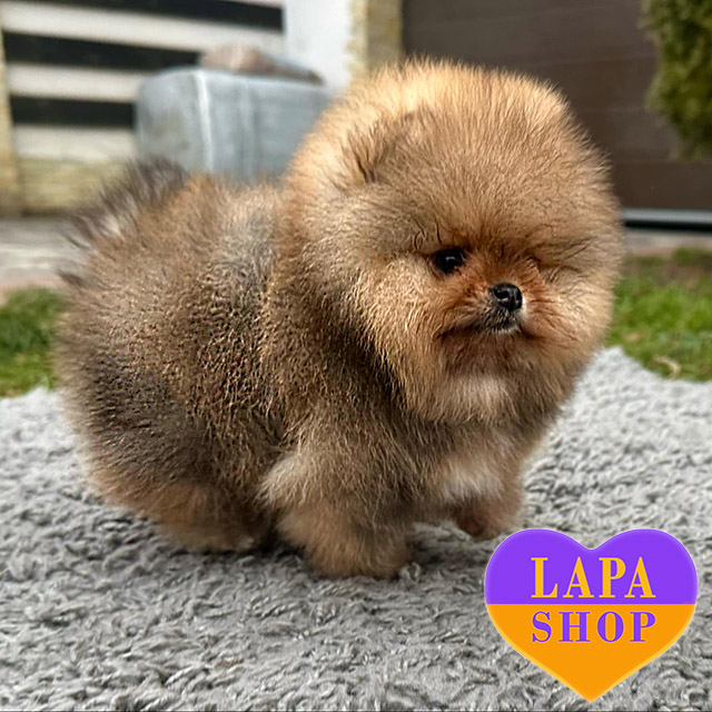Этот замечательный померанский шпиц имеет эффектную оранж-соболь окраску, которая придает ему особую выразительность. Его пушистая шерсть и грациозный вид делают его настоящим маленьким аристократом.
