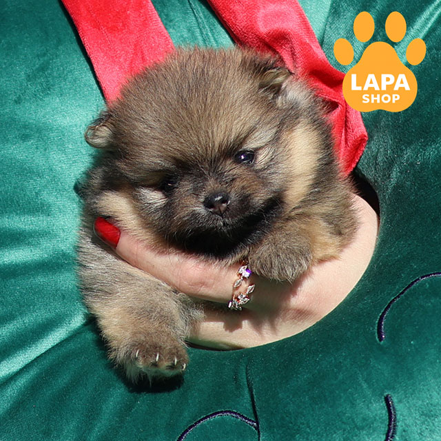 Mona — нежная и очаровательная девочка породы померанский шпиц с насыщенным черным подпалым окрасом, придающий ей яркий вид. Ее выразительная мордашка и гармоничные черты уже сейчас подчеркивают будущую красоту.