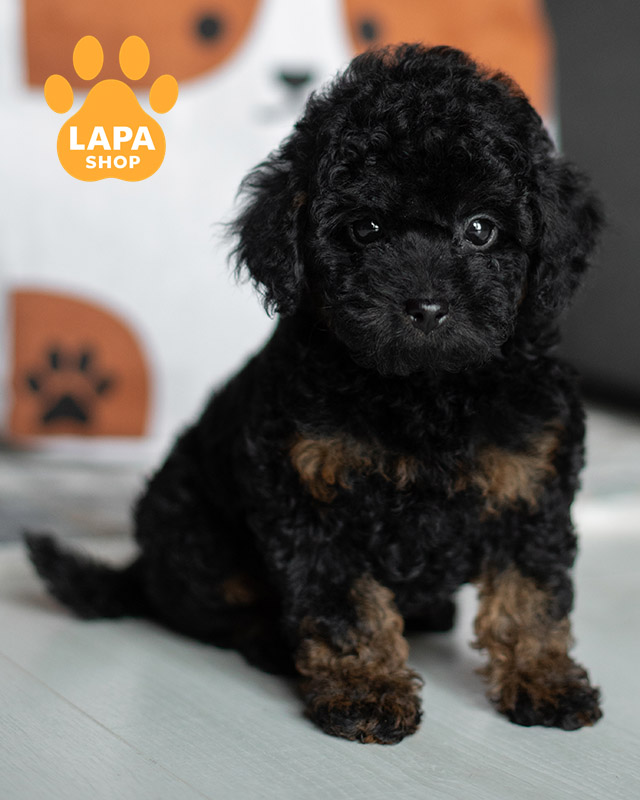 Эта очаровательная девочка породы – той пудель с редким фантом окрасом, что выглядит особенно эффектно благодаря четким контрастным оттенкам. Ее миниатюрное телосложение и элегантный силуэт делают его настоящим украшением породы. Выразительные глаза и ухоженная шерсть придают ей нежность и шарм.