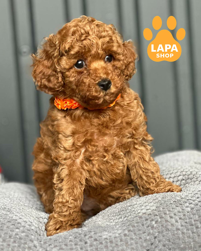 Эта рыжая девочка породы той пудель привлекает внимание своей яркой шерстью и ухоженной внешностью. Она имеет гармоничные пропорции и элегантный вид, что делает ее привлекательной для семьи ценящей красоту и грацию. Ее окрас придает ей особый шарм и тепло.