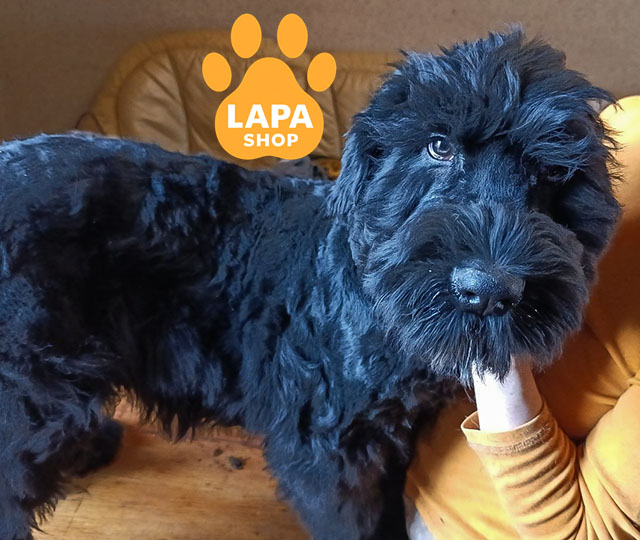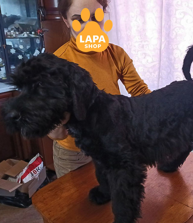 Мальчик породы русский черный терьер с насыщенным черным окрасом, который придает ему особую глубину и благородство. Его крепкое телосложение, гармонические пропорции и выразительный породный тип формируют поразительную внешность. Густа темна шерсть підкреслює силу та елегантність цієї породи. Его выразительный взгляд и благородный вид придают ему особый шарм.