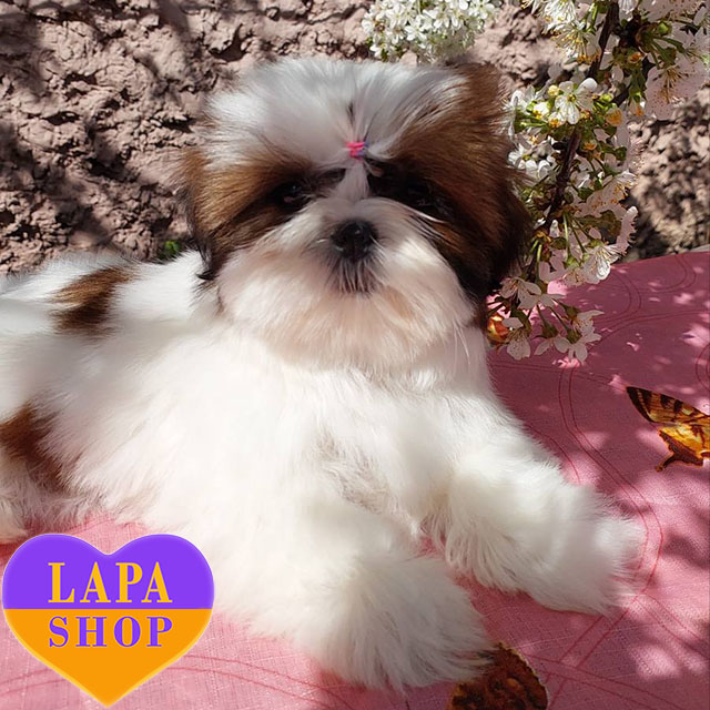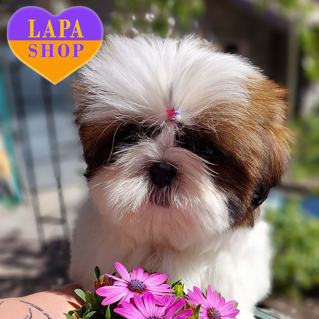 Emily — очаровательная девочка породы ши-тцу с привлекательной рыже-белой окраской, гармонично сочетающаяся с шелковистой шерстью. Ее компактное телосложение и круглая мордашка придают ей милый и выразительный вид. Контрастные цвета шерсти делают ее внешность яркой и запоминающейся.