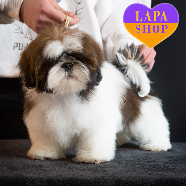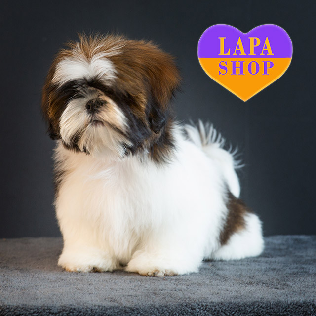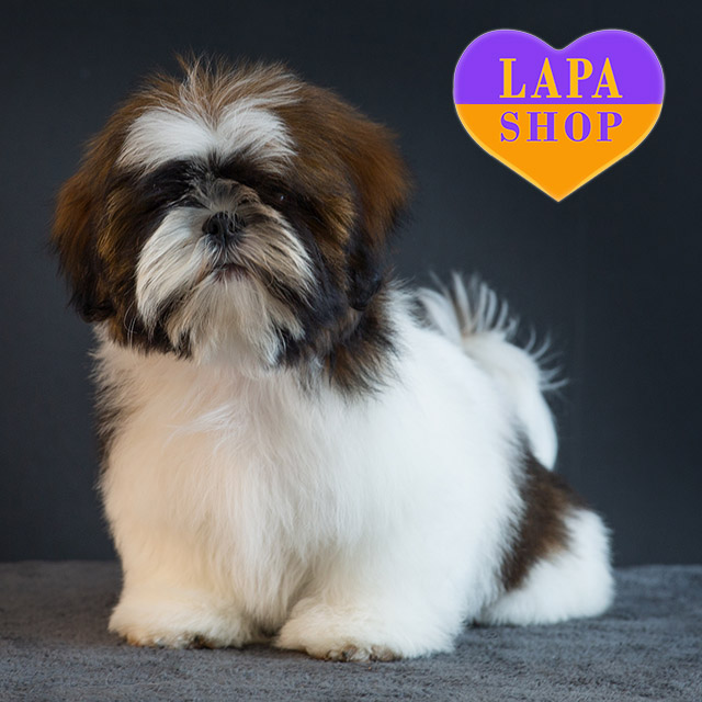 Этот великолепный ши-тцу имеет красивую бело-золотистую окраску, которая делает его необычайно элегантным. Его мягкая шерсть и гармоничный вид покоряют с первого взгляда. Он выглядит как настоящий малыш, готовый стать неотъемлемой частью вашей семьи.