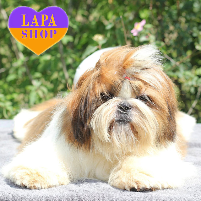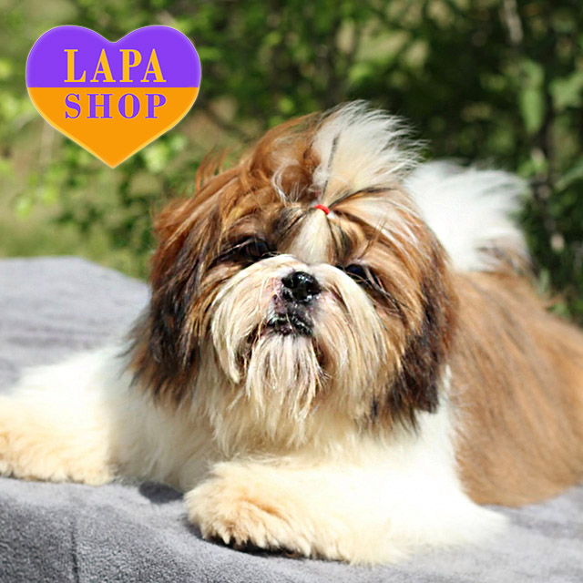 Princess — яркая девочка ши-тцу с эффектным красно-белым окрасом, который придает ей особый шарм. Ее мягкая и шелковистая шерсть гармонично подчеркивает изощренную внешность.