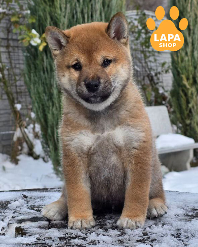 Очаровательный мальчик шиба-ину с красивым красным окрасом и набивной шубкой. Его гармоничное телосложение и приятная внешность делают его привлекательным и породным.