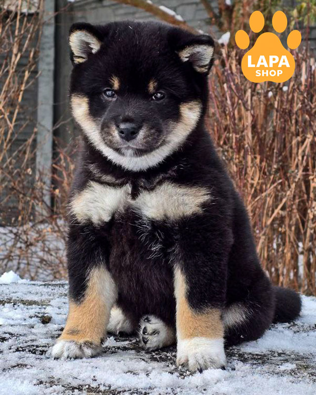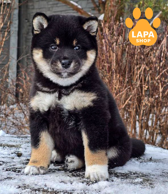 Нежная девочка шиба-ину с очаровательным черно-подпалым окрасом и набивной шубкой. Ее кукольная внешность, симметричное окрас и правильная анатомия делают ее особенно привлекательной.