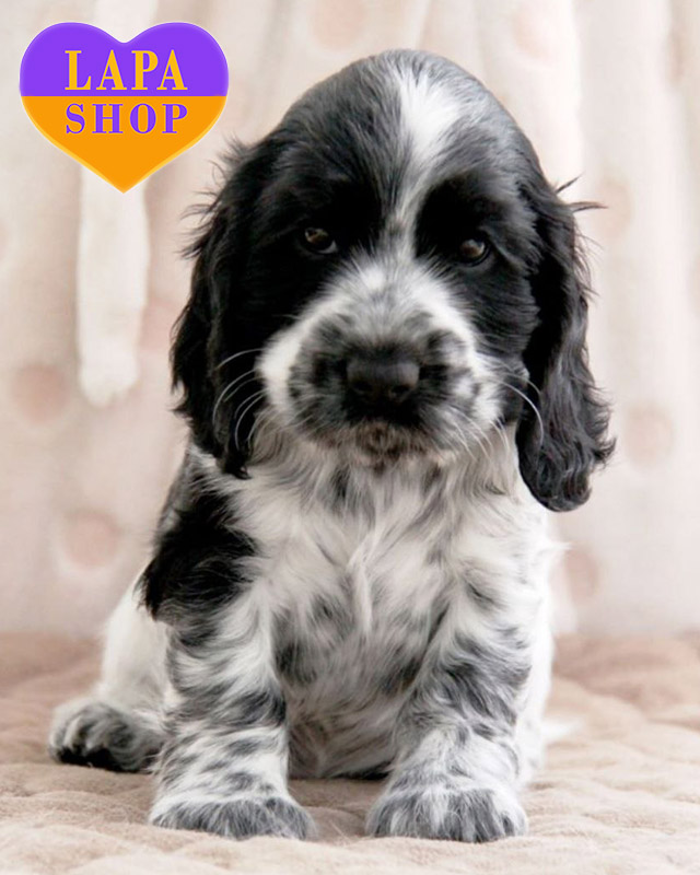 Милая леди породы английский кокер-спаниель Aquamarine – настоящая красотка с эффектным окрасом black roan, придающая ее шерсти изысканности. Она гармонично сложена, с нежными чертами и разумным взглядом.