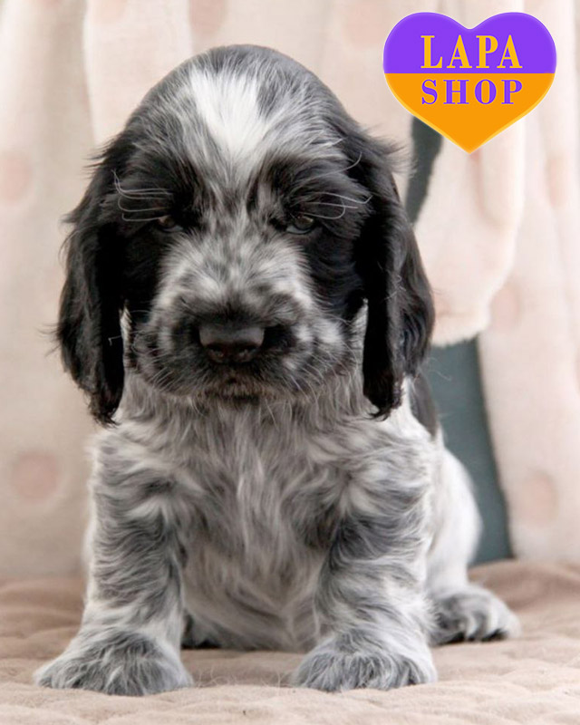 Милый мальчик Avatar породы английский кокер-спаниель с выразительным окрасом black blue roan, что придает ему особый шарм.