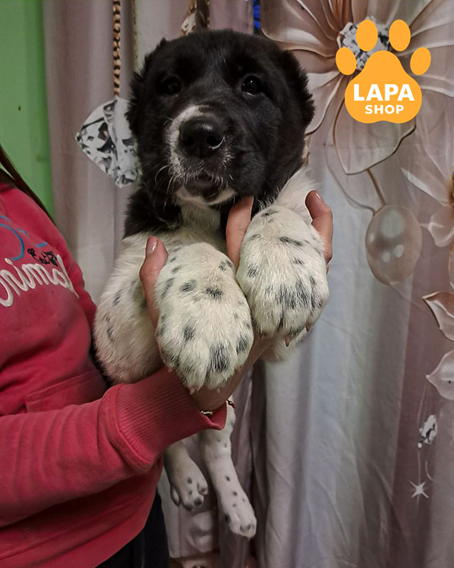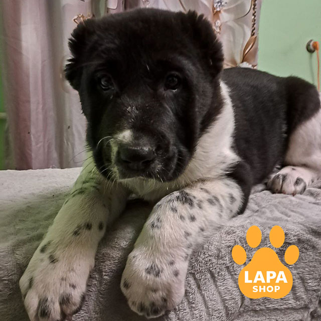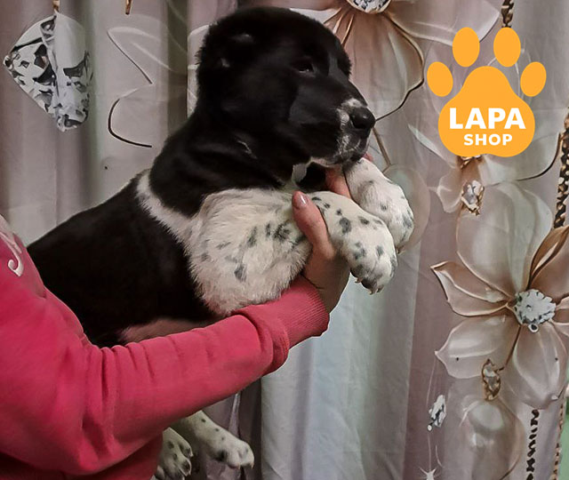 Девочка породы среднеазиатской овчарки имеет эффектное черно-белое окрас с «черным плащом», что подчеркивает ее величественное и гармоничное телосложение. Мощная конституция и крепкий скелет делают ее настоящим представителем породы. Она выглядит уверенно и породно, производя сильное впечатление с первого взгляда.
