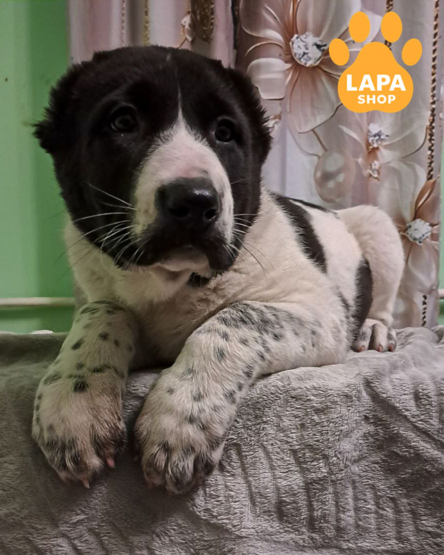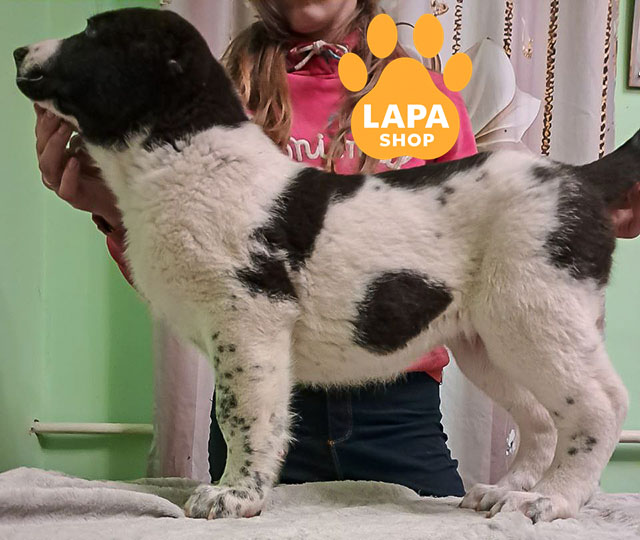 Девочка породы среднеазиатская овчарка имеет поразительный бело-черный окрас, что придает ей элегантность и выразительность. Ее крепкая конституция и мощный скелет подчеркивают породную силу и гармонию. Она выглядит величественно и поражает внешним видом даже с первого взгляда.