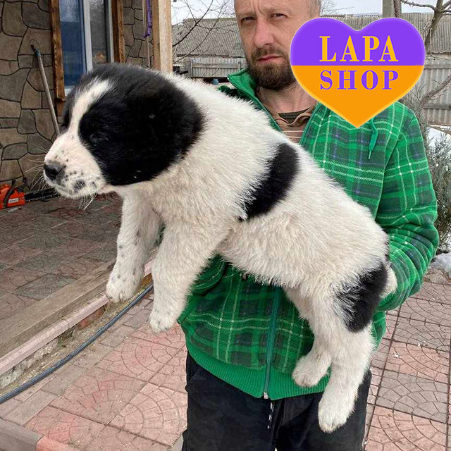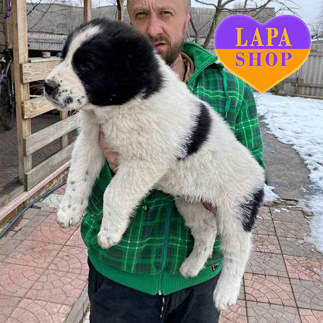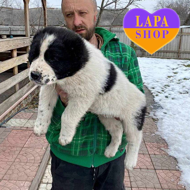 Saiguli – величественный мальчик породы среднеазиатская овчарка с эффектной бело-черной окраской. Его крепкое телосложение, уверенный взгляд и благородное осанка подчеркивают силу и выносливость этой породы.